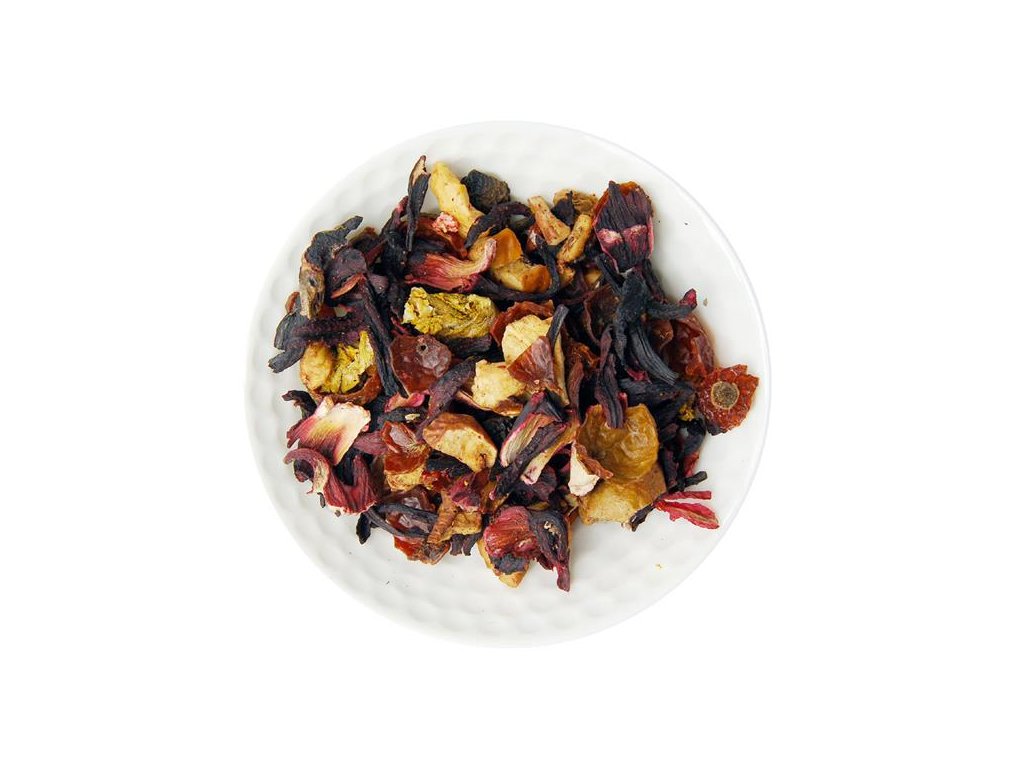Zloženie: jablko, šípky, ibištek, listy ostružiny, kvety divozeľu, jahoda, aróma.