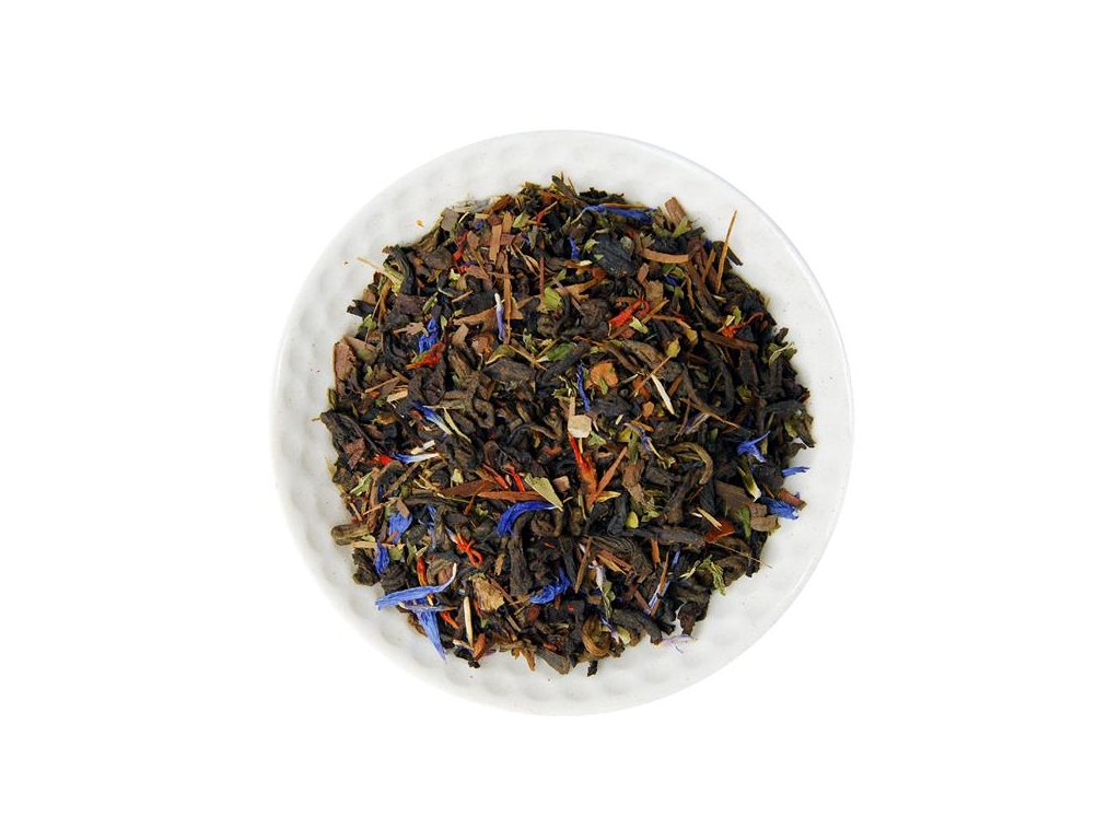 Zloženie: Pu-erh 62%, Honeybush 10%, Lapacho 10%, kvety safloru a nevädze, mäta, aróma