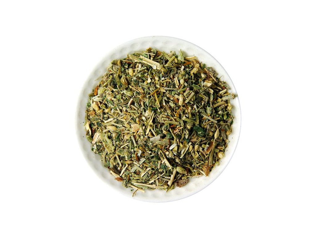 Zloženie: žihľava vňať, rebríček vňať, ľubovník , šalvia vňať, rozmarín, palina vňať